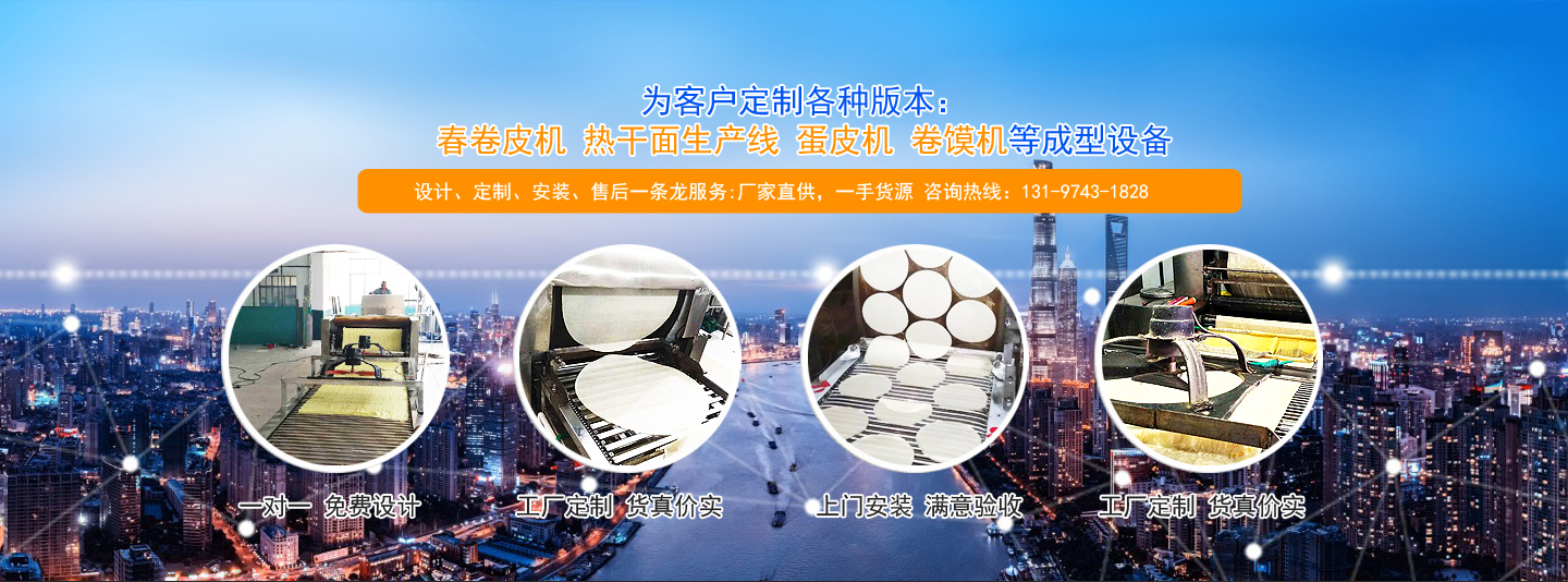 公司地處湖北省鄂州市武昌大道西段,地理位置優(yōu)越,交通方便,緊鄰武九鐵路、316國(guó)道。提供春卷機(jī)械、淀粉機(jī)械、豆絲機(jī)械(炕熟)、餅絲機(jī)、烤鴨餅機(jī)、新型仿手工圓形剪餅機(jī)、米粉、魔芋、葛根、豆類粉絲、春卷皮等現(xiàn)代化生產(chǎn)線和快餐豆絲(米粉、魔芋、葛根、薯類粉絲),從工藝到裝備成套設(shè)計(jì)、配套設(shè)計(jì)、開發(fā)制造、安裝調(diào)試及加工技術(shù)一系列服務(wù),憑借多年的生產(chǎn)經(jīng)驗(yàn)和一支符合現(xiàn)代要求的員工隊(duì)伍,使我們的系列淀粉機(jī)械、豆絲機(jī)械、米粉粉絲機(jī)械覆蓋全國(guó)20多個(gè)省市。